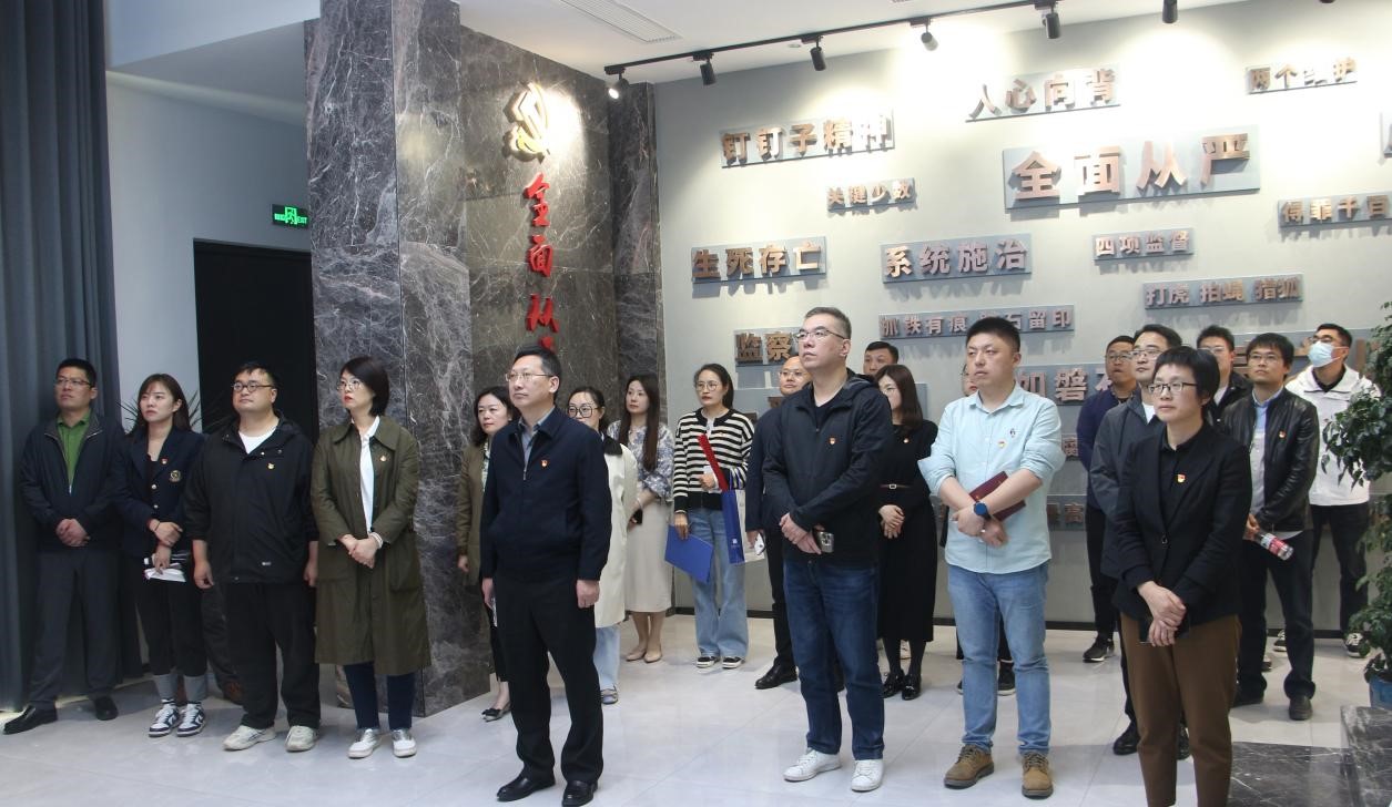 在廉情教育中心,全體黨員及中層以上干部參觀了布置有全面從嚴治黨關鍵詞的組合浮雕墻和平面展陳區的人心向背、以上率下、踏實留印三個篇章,觀看了中央八項規定精神專題宣傳短片和警示教育短片,參與了場景模擬互動答題活動。通過豐富的現場教學活動,讓大家更加準確地把握“全面從嚴治黨永遠在路上,黨的自我革命永遠在路上”的內涵,更深刻領會“黨找到了自我革命這一跳出治亂興衰歷史周期率的第二個答案”的意義。
